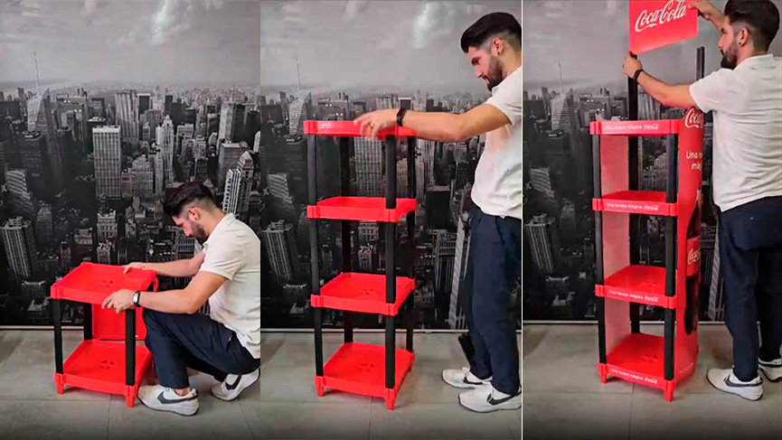 Tal como se muestra en la imagen de un exhibidor desarrollado para Coca-Cola, la estética moderna y la funcionalidad se integran en una solución de exhibición pensada para destacar en entornos altamente competitivos como supermercados, tiendas de conveniencia y eventos promocionales.